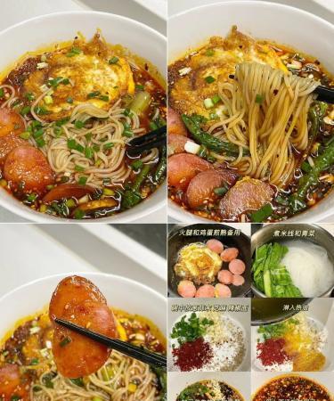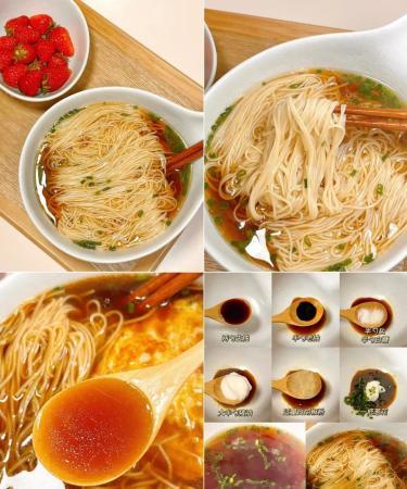 2️⃣面和雞蛋煮熟,盛一碗麵湯倒入調料碗中,攪拌均勻,再放入麵條和雞蛋就完成啦