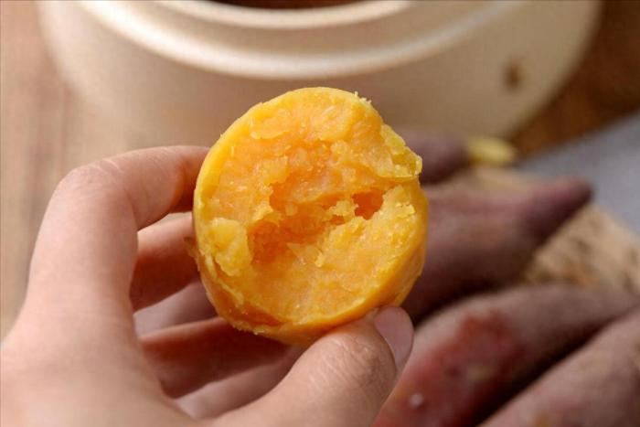 在蒸紅薯時,一定要大火小火轉換著來蒸,不能全程都一個火力,這樣更能激發出紅薯中的甜味、香味,這是第3招。等到時間以後,咱們把蓋子敞開,用一根筷子插到紅薯中試試能不能插透,可以的話說明很軟糯了,關火後把紅薯拿出來,趁熱開吃,個個綿軟香甜!