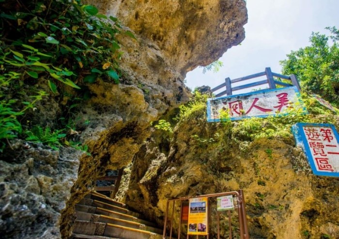 - 介紹: 位於島嶼東北角,是一系列由珊瑚礁岩構成的天然洞穴、石溝和觀景平台。步道不長,走起來輕鬆,穿梭在奇岩怪石間,從不同角度看海景,蠻有意思的。名字的由來是有個洞看出去的海景像美人側臉(嗯... 發揮點想像力?)。裡面有十二景,找找看解說牌。